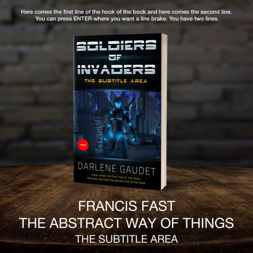 This book cover has 3 lines for the title, 1 line for the subtitle, 1 line for the author, 2 lines for the hook, and finally 1 line for the genre.
