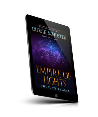 “A cosmic-themed book cover with glowing geometric designs against a purple galaxy background. Title in bold gold letters.”