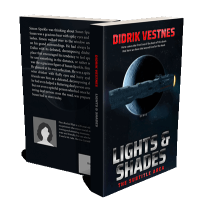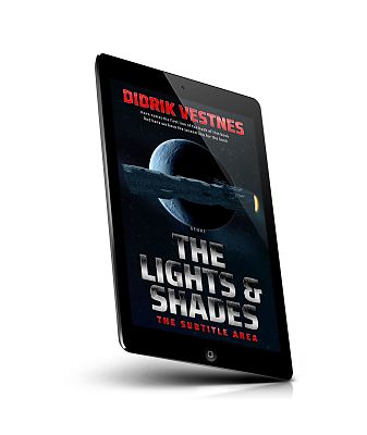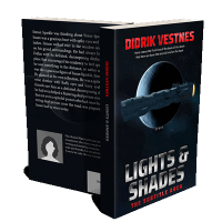“A sci-fi themed book cover featuring a spaceship near a celestial body with a dark and dramatic color scheme.”