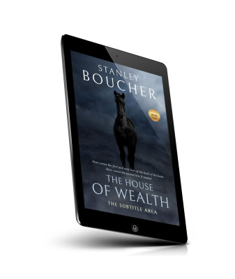 “A black horse stands against a cloudy, moody sky on a book cover.”