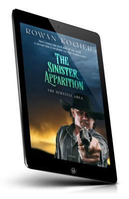 Tags: rowan, kocher, sinister, apparition, fiction, cover, subtitle, area, cowboy, gun, stormy, sky, mysterious, suspense, thriller, genre, clouds, dark, premade cover, book cover design, self-publishing, ebook cover, print ready