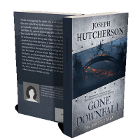 “Book cover featuring an eerie gate at sunset, metal accents, and the name Joseph Hutcherson. Title: "Gone Downfall."”