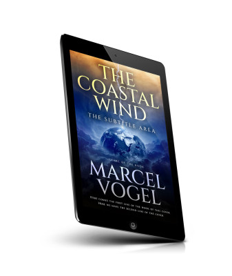 “A book cover featuring a stormy sky with lightning and a globe in the center, blending with dark, tumultuous clouds.”