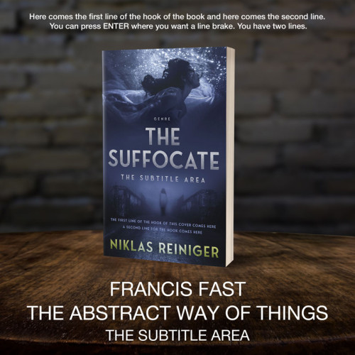 This book cover has 2 lines for the title, 1 line for the subtitle, 1 line for the author, 2 lines for the hook, and finally 1 line for the genre.