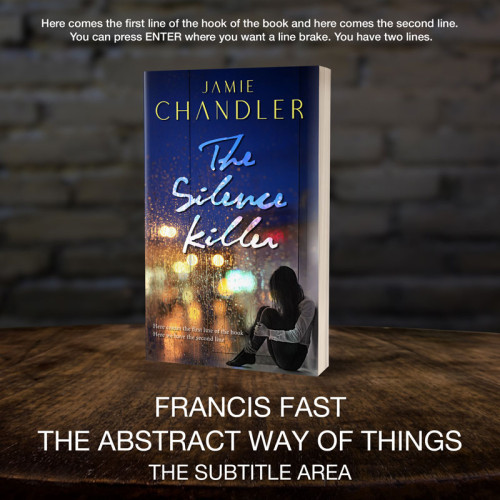 This book cover has 3 lines for the title, 2 lines for the author, 2 lines for the hook.