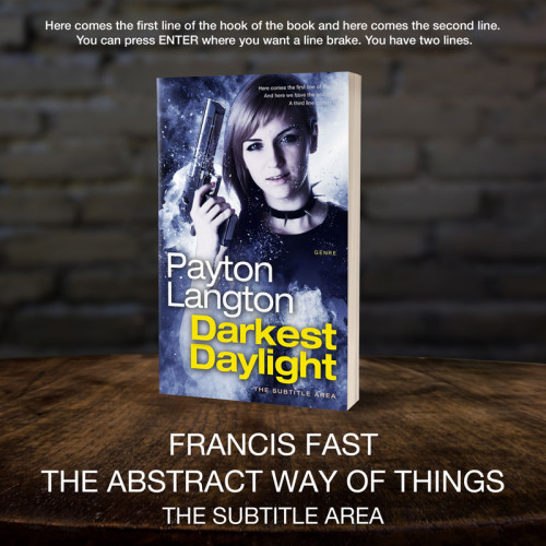 This book cover has 2 lines for the title, 1 line for the subtitle, 2 lines for the author, 3 lines for the hook, and finally 1 line for the genre.