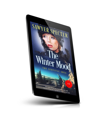 “A woman wearing a fur hat is set against a snowy, twilight winter landscape with trees. The scene has a mystical, chilly atmosphere.”
