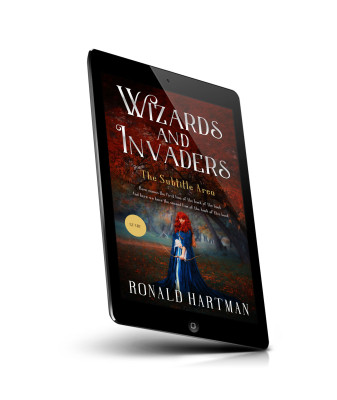 “A book cover with a fantasy theme featuring a woman in a blue dress holding a sword in a mystical forest.”