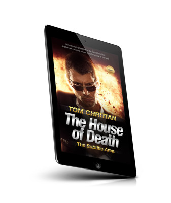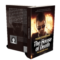 “A man with sunglasses stands against a fiery background. "The House of Death" is prominently displayed in bold text at the bottom.”
