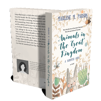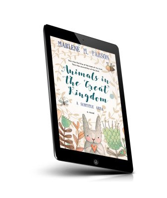 “Illustrated book cover with whimsical nature theme, featuring a cute animal holding a heart, surrounded by plants and a bee.”