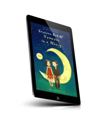 Tags: starry, couple, moon, illustration, romance, holding hands, night, sky, blue, red dress, suit, dreamy, stars, love, whimsical, crescent, artistic, fantasy, serene, peaceful, premade cover, book cover design, self-publishing, ebook cover, print ready