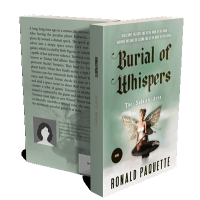 “A book cover titled "Burial of Whispers" featuring a seated fairy with butterfly wings on a soft green background.”