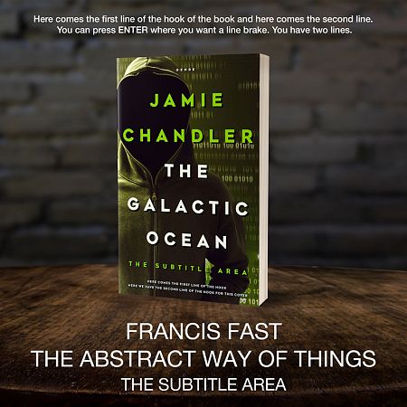 This book cover has 3 lines for the title, 1 line for the subtitle, 2 lines for the author, 2 lines for the hook, and finally 1 line for the genre.