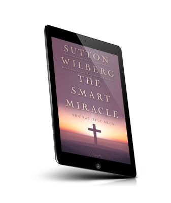 “A cross silhouette against a sunset sky, with large white text detailing book title and author.”