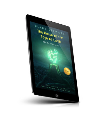 “A glowing tree emerges from a futuristic stump on a dark landscape with a starry sky. A gold seal labeled "A Novel" is present.”