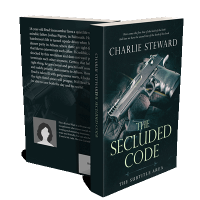 “A silver handgun and a magazine rest on a dark, textured surface, prominently featured on the book cover.”