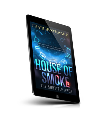 “A blue and black mystical cover featuring a zodiac circle and the title "House of Smoke".”