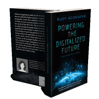 “Book cover with a digital theme, showing a networked globe and futuristic design elements.”