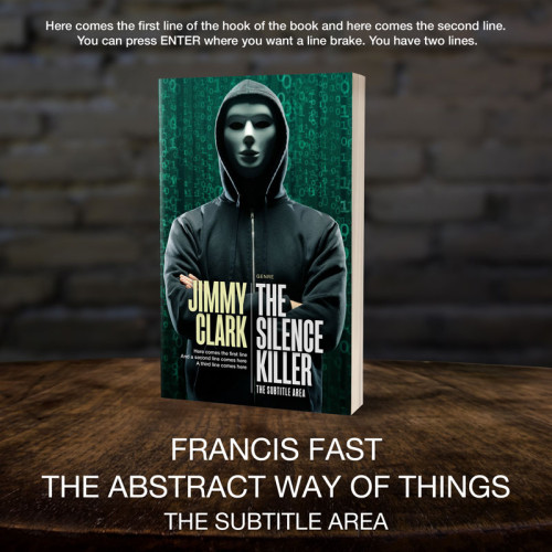 This book cover has 3 lines for the title, 1 line for the subtitle, 2 lines for the author, 3 lines for the hook, and finally 1 line for the genre.