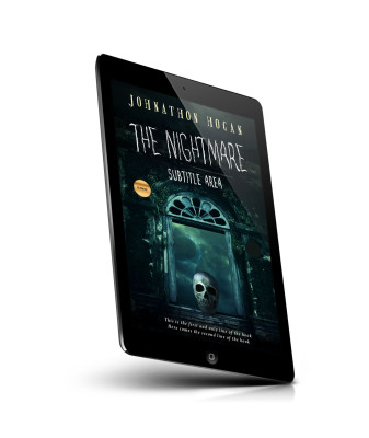 “A spooky, dark book cover featuring an ominous skull beneath an arched window, set against a cloudy, eerie sky.”