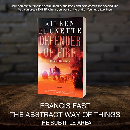 This book cover has 2 lines for the title, 1 line for the subtitle, 2 lines for the author, 2 lines for the hook, and finally 1 line for the genre.