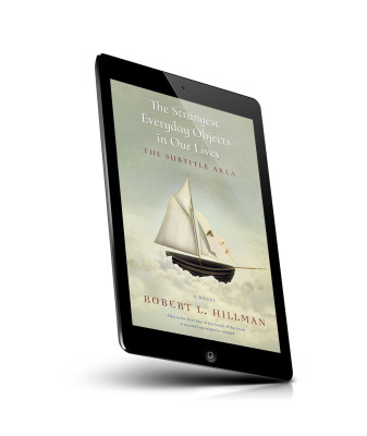 “A surreal image of a woman's face integrated into a white sailing ship against a muted cloudy background.”
