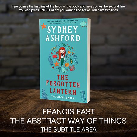 This book cover has 3 lines for the title, 2 lines for the author, 2 lines for the hook.