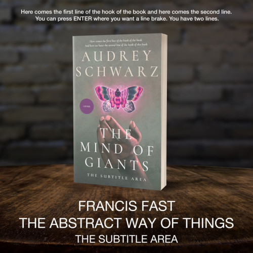 This book cover has 3 lines for the title, 1 line for the subtitle, 2 lines for the author, 2 lines for the hook, and finally 1 line for the genre.
