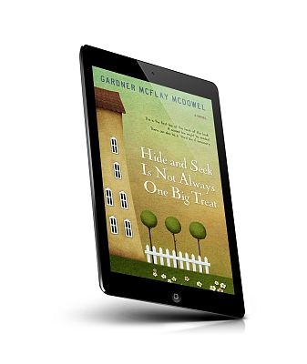 “A whimsical book cover featuring a house with three trees and a white picket fence in front.”