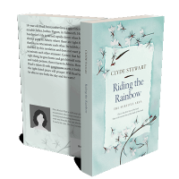 “A book cover with delicate pink flowers and a blue textured background.”