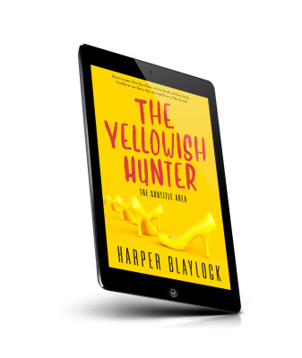“Yellow high heels on a yellow background, with large pink text above.”