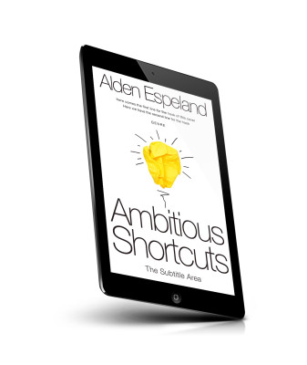 “Cover design with crumpled yellow paper resembling a lightbulb on a white background. Title: "Ambitious Shortcuts".”