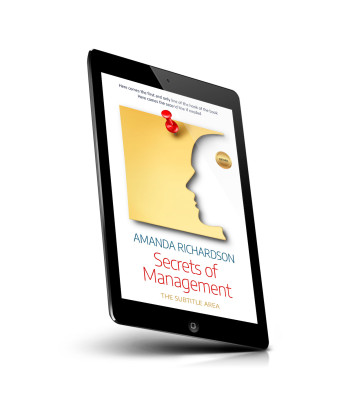 “A book cover with a profile silhouette on a yellow paper, a red pushpin, and a golden genre badge.”
