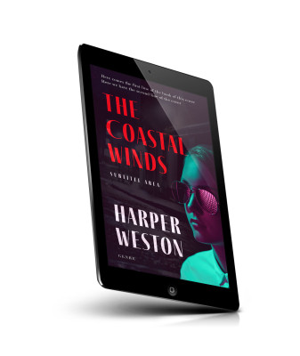 “A dramatic book cover with a moody, urban background and a person wearing sunglasses.”