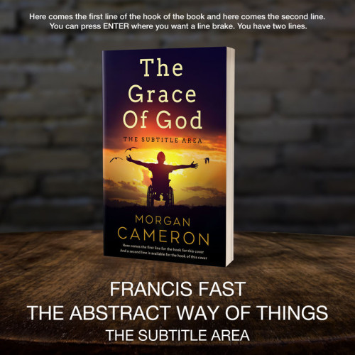 This book cover has 3 lines for the title, 1 line for the subtitle, 2 lines for the author, 2 lines for the hook.