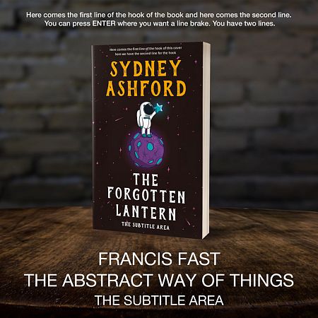 This book cover has 3 lines for the title, 1 line for the subtitle, 2 lines for the author, 2 lines for the hook.