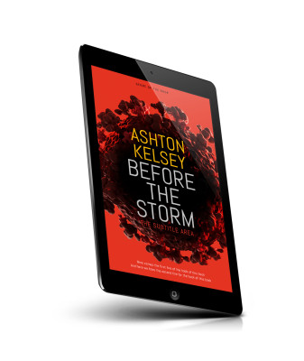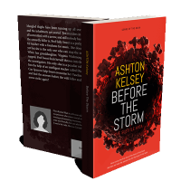 “A red and black themed book cover featuring abstract designs, with the title "Before The Storm" prominently displayed.”