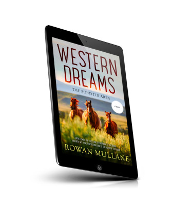 “Three horses run freely in a sunlit, grassy field with distant hills on a book cover.”