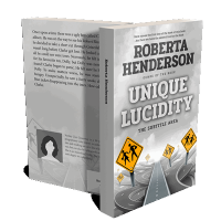 “A grey, surreal road landscape with multiple winding paths and road signs, with large text about a book overlaying the image.”