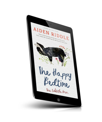 “A black sheep stands among flowers with "The Happy Bedtime" written below.”