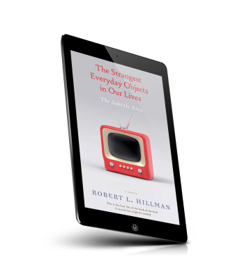 “A vintage red TV with antennas is centered on a minimalist book cover.”