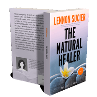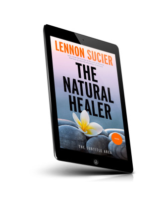 “Book cover of "The Natural Healer" with a flower on smooth stones in the foreground and an orange sky in the background.”