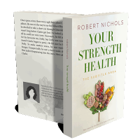“A book cover with food arranged in the shape of a leaf and green text on a light background.”