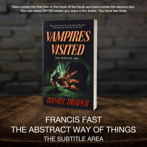 This book cover has 2 lines for the title, 1 line for the subtitle, 1 line for the author, 2 lines for the hook, and finally 1 line for the genre.