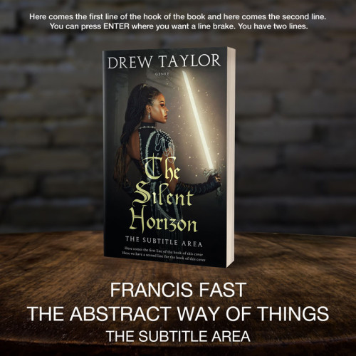 This book cover has 3 lines for the title, 1 line for the subtitle, 1 line for the author, 2 lines for the hook, and finally 1 line for the genre.