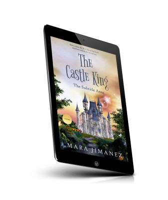 “A majestic castle in a fantasy landscape with trees and glowing orbs, under a soft, colorful sky.”