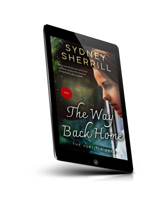 “A focused woman looks out of a window thoughtfully on the cover of a book titled "The Way Back Home" by Sydney Sherrill.”