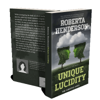 “Two tree shapes face each other under a cloudy sky, resembling a profile of heads with the top text and title of the book visible.”