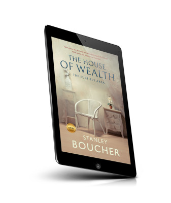 “White wicker chair and small table with flowers against a textured wall, overlaid with book title and author.”