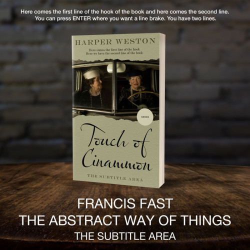 This book cover has 2 lines for the title, 1 line for the subtitle, 1 line for the author, 2 lines for the hook, and finally 1 line for the genre.